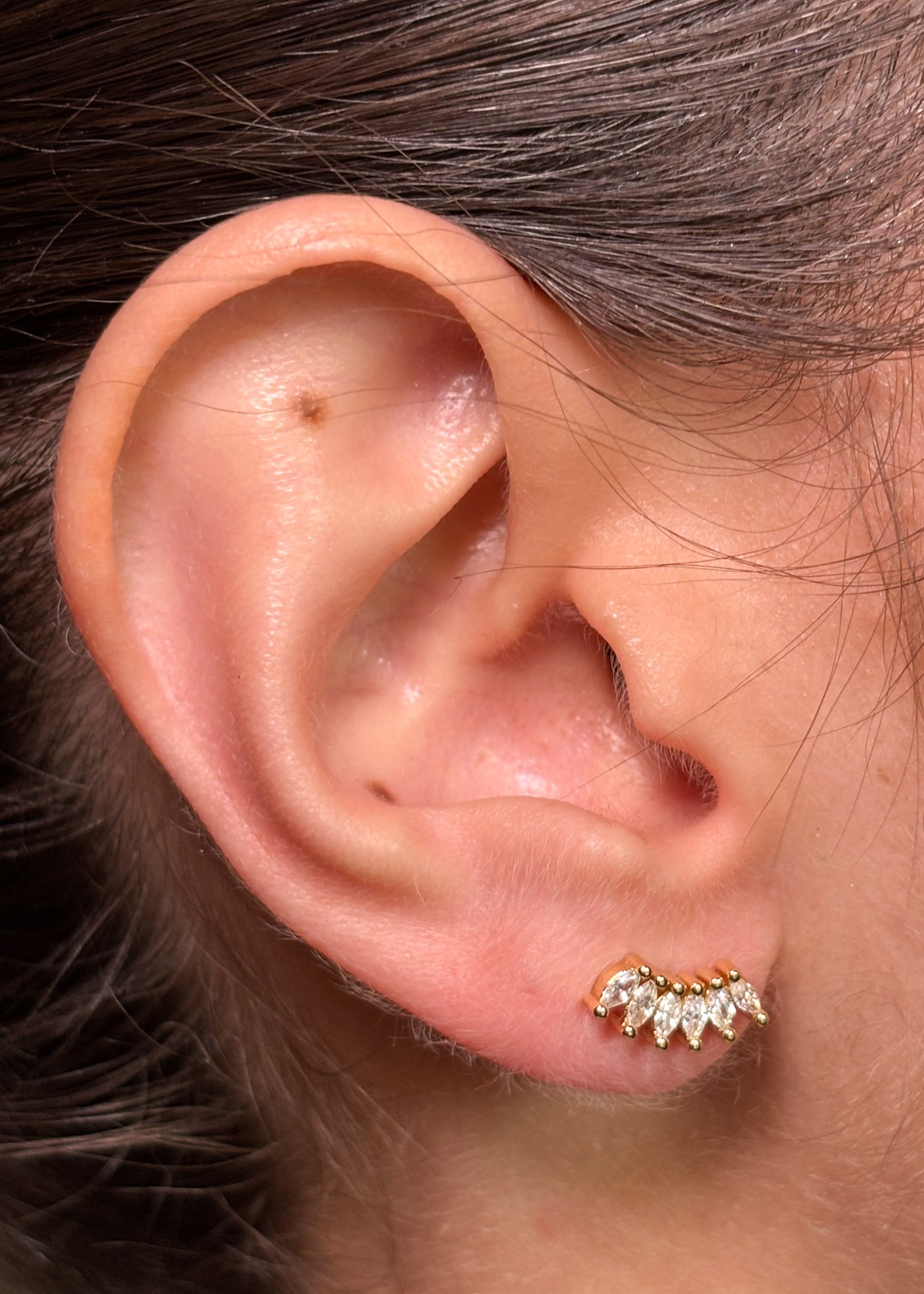 Par de aretas en plata ley 925 chapado en oro con diseño en forma de coronita.