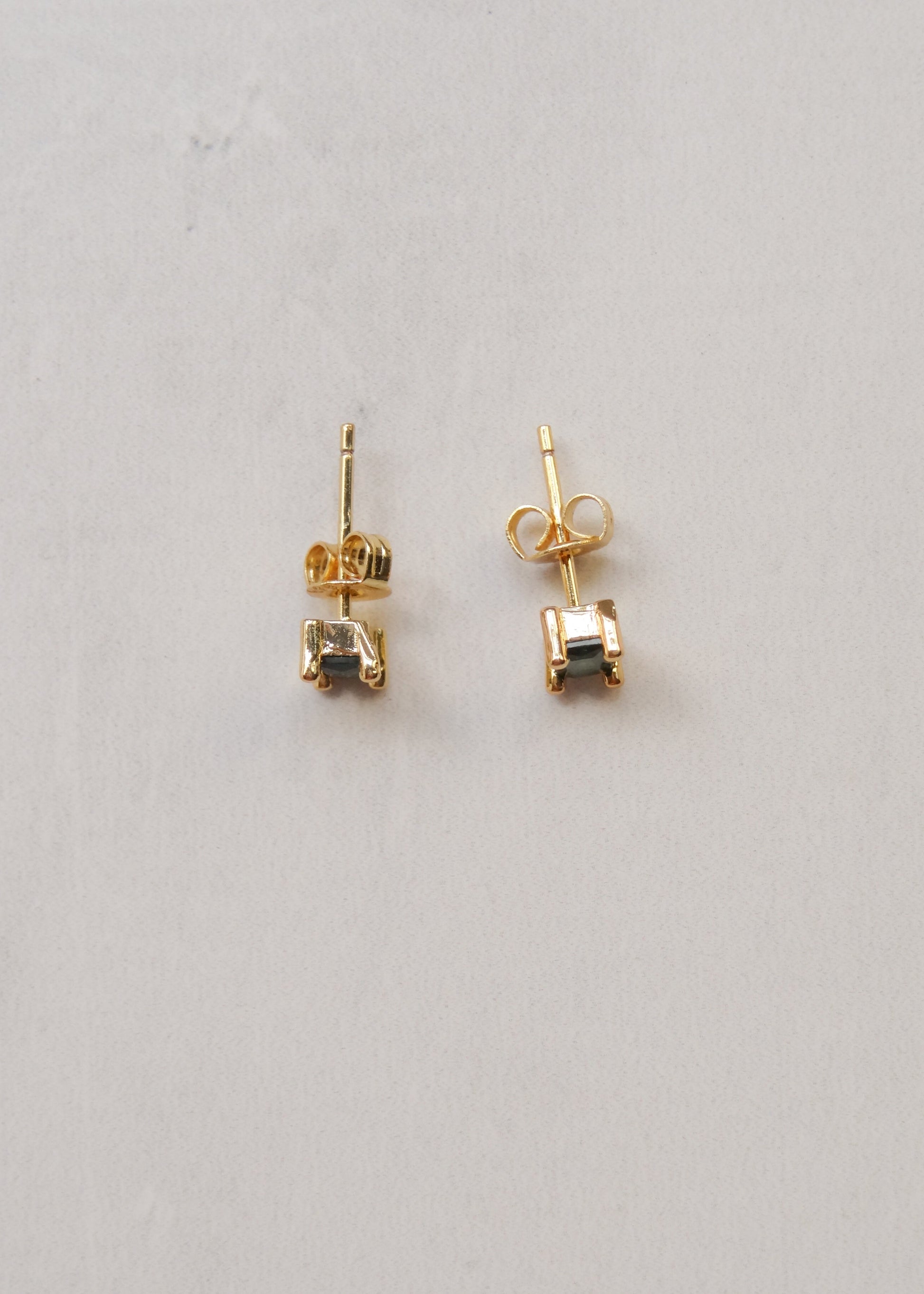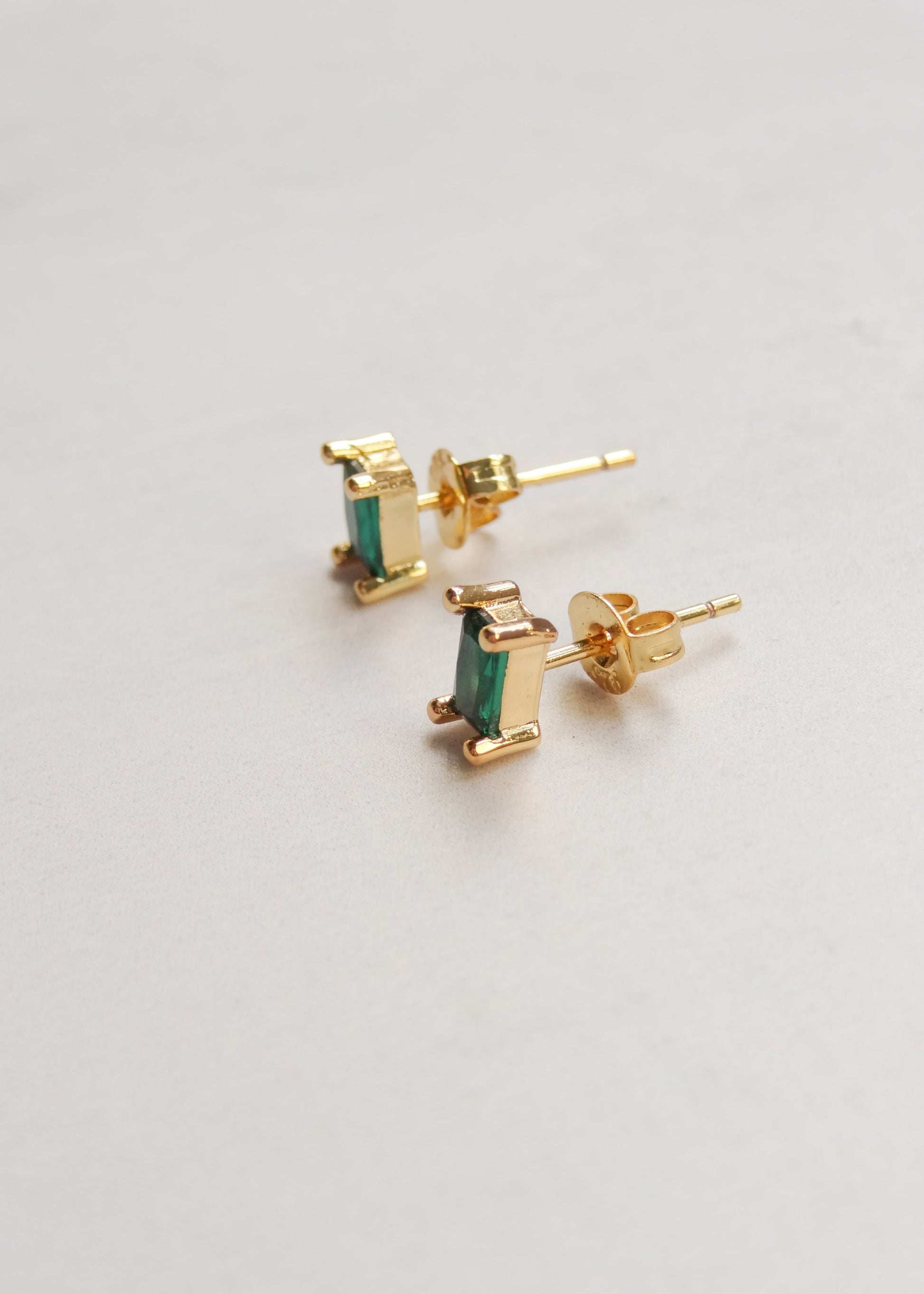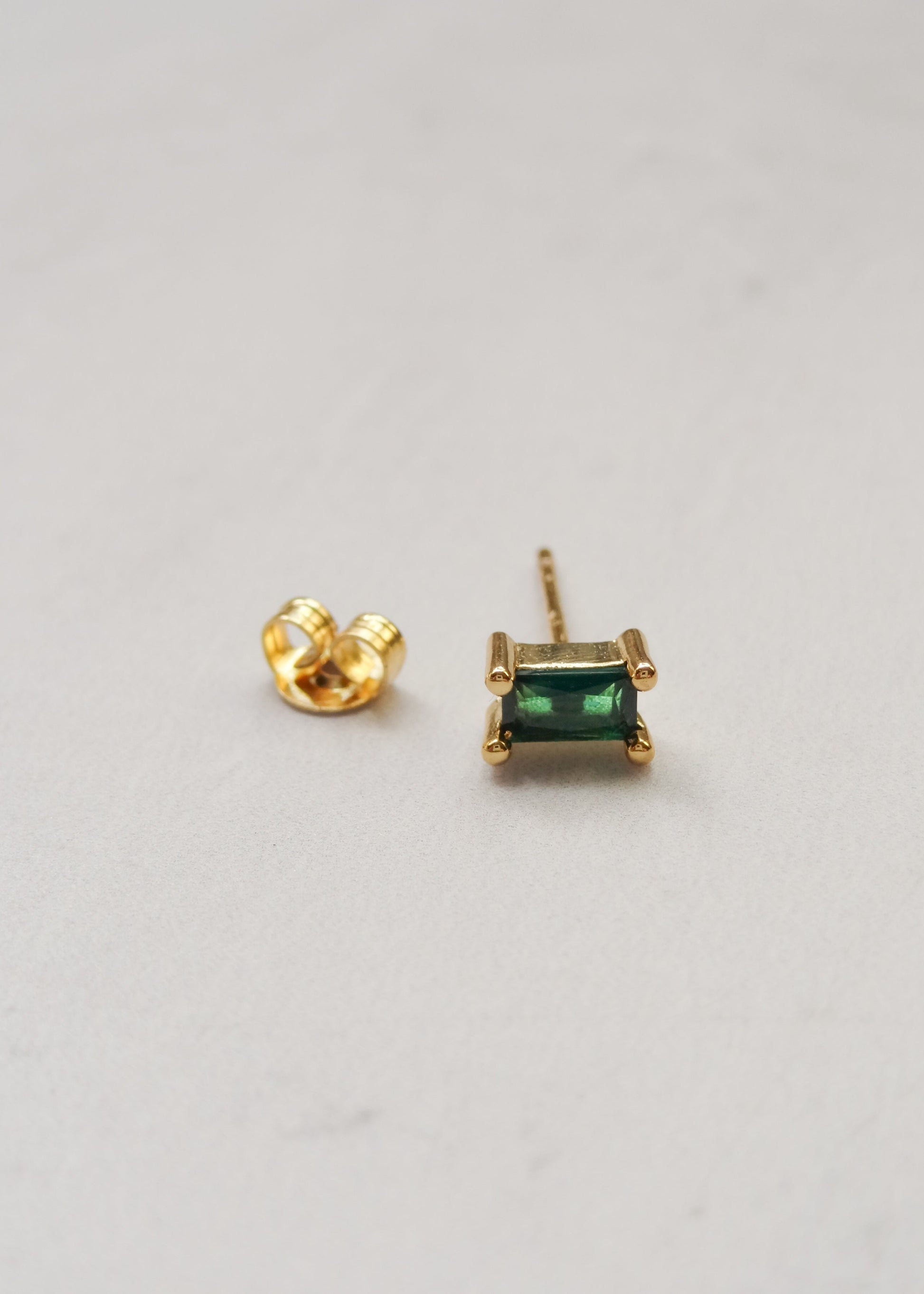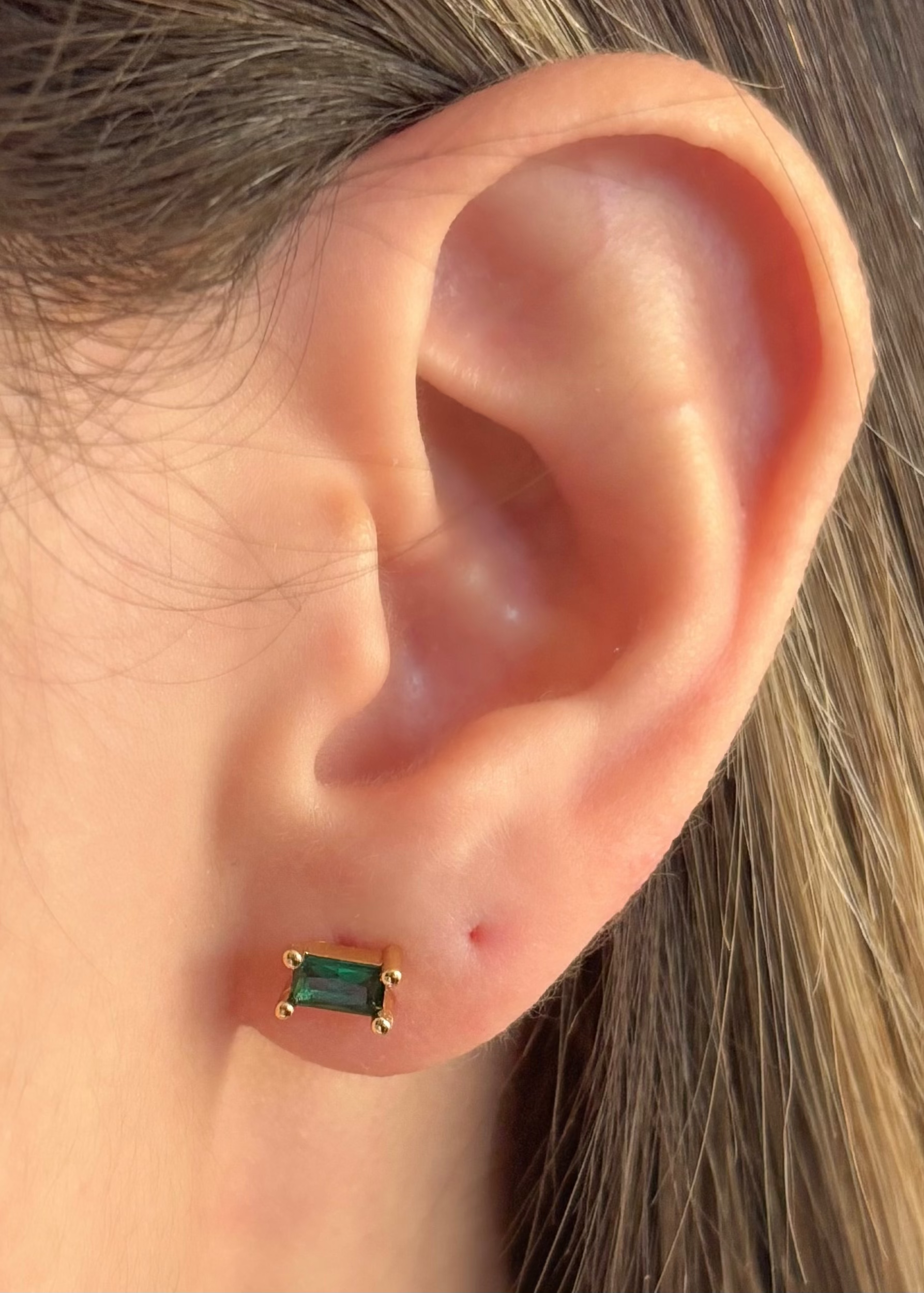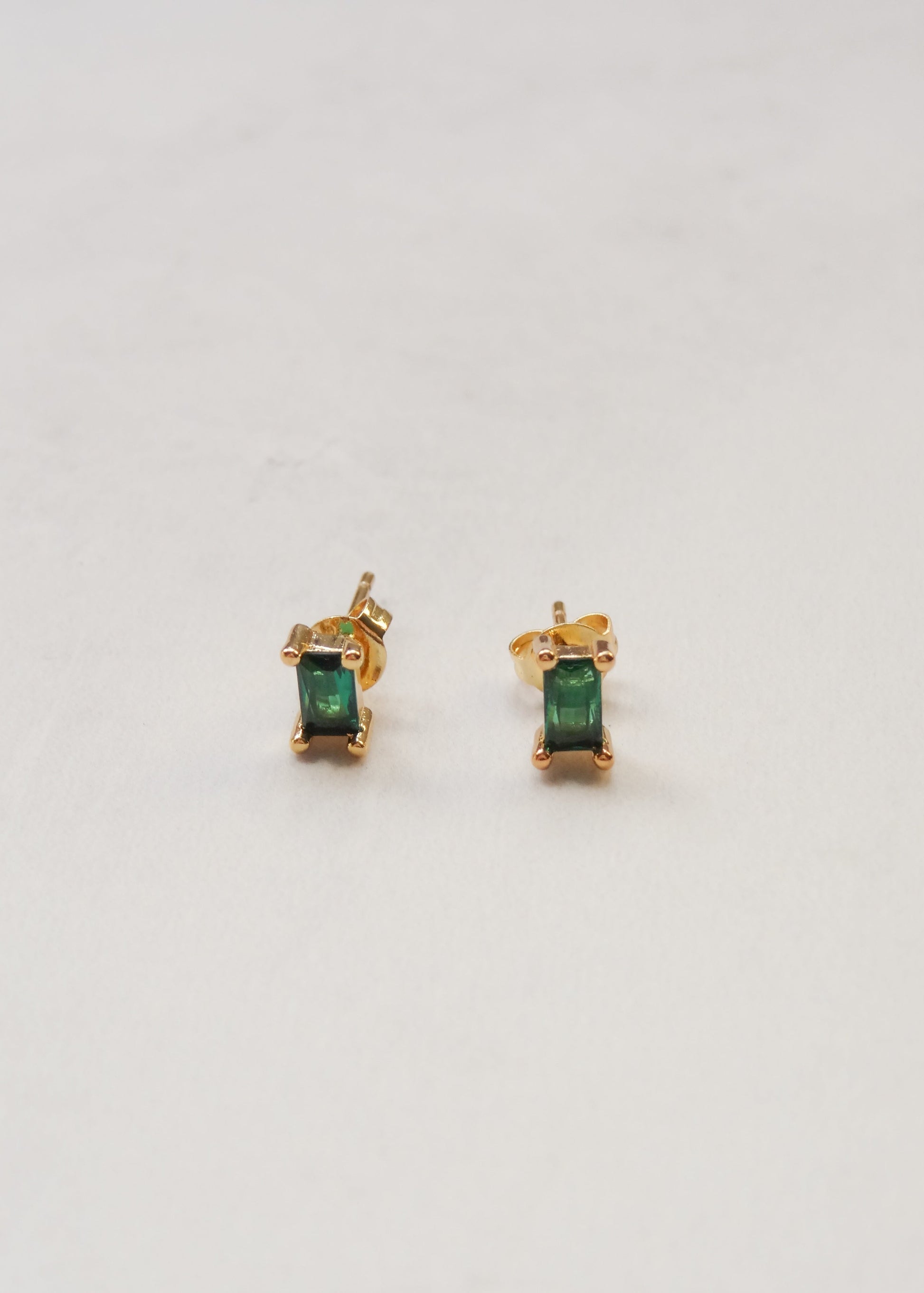 Par de aretas de plata chapadas en oro de 18k con circón verde esmeralda.