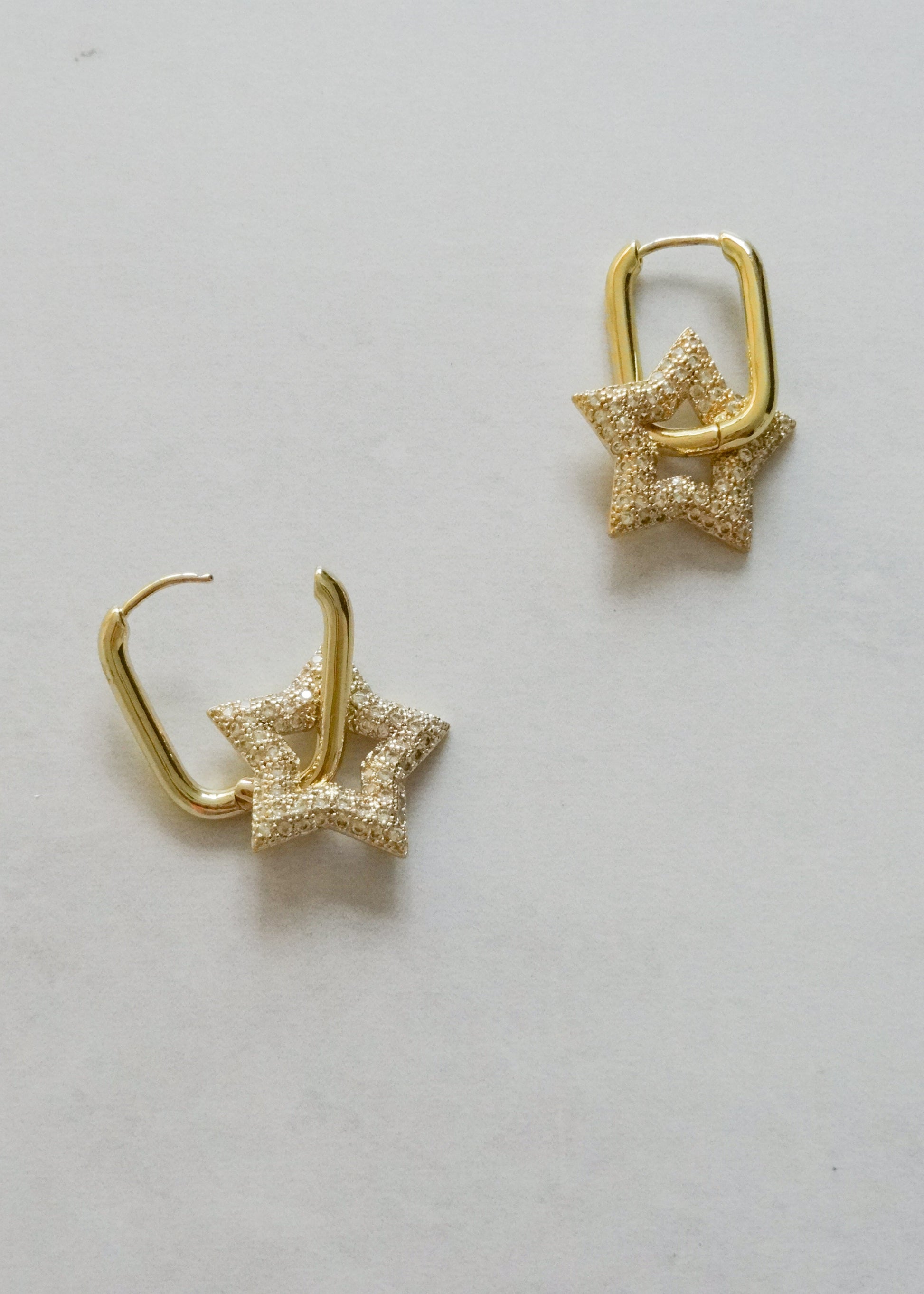 Par de candongas de plata chapadas en oro de 18k con circones tipo diamante.