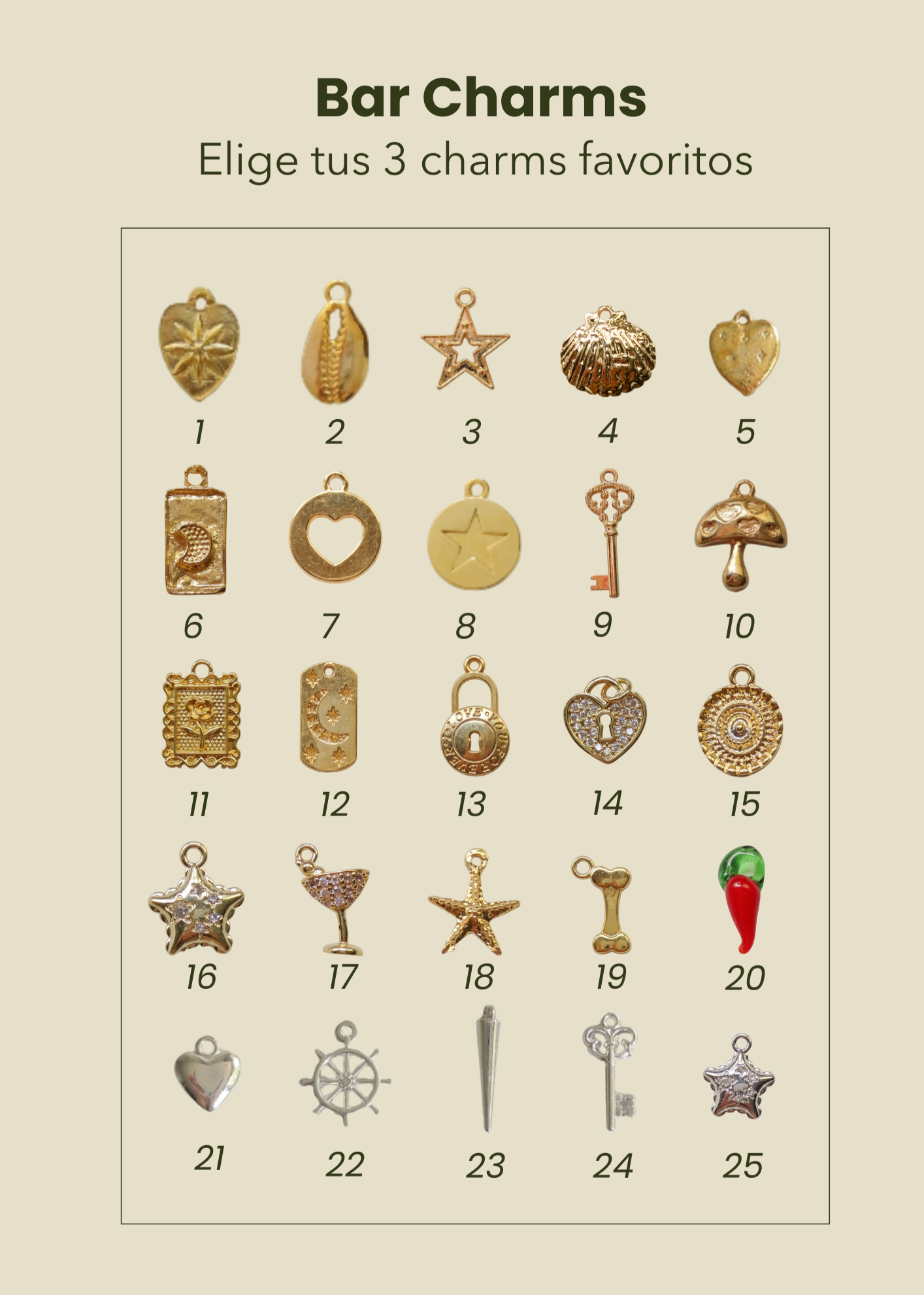 Déjale saber al mundo que es lo que te hace ser tú. Personaliza la manilla Soleil Maxi con tu dije favorito. Puedes escoger entre la manilla con mostacillas doradas o plateadas y escoger de 1 a 3 dijes.