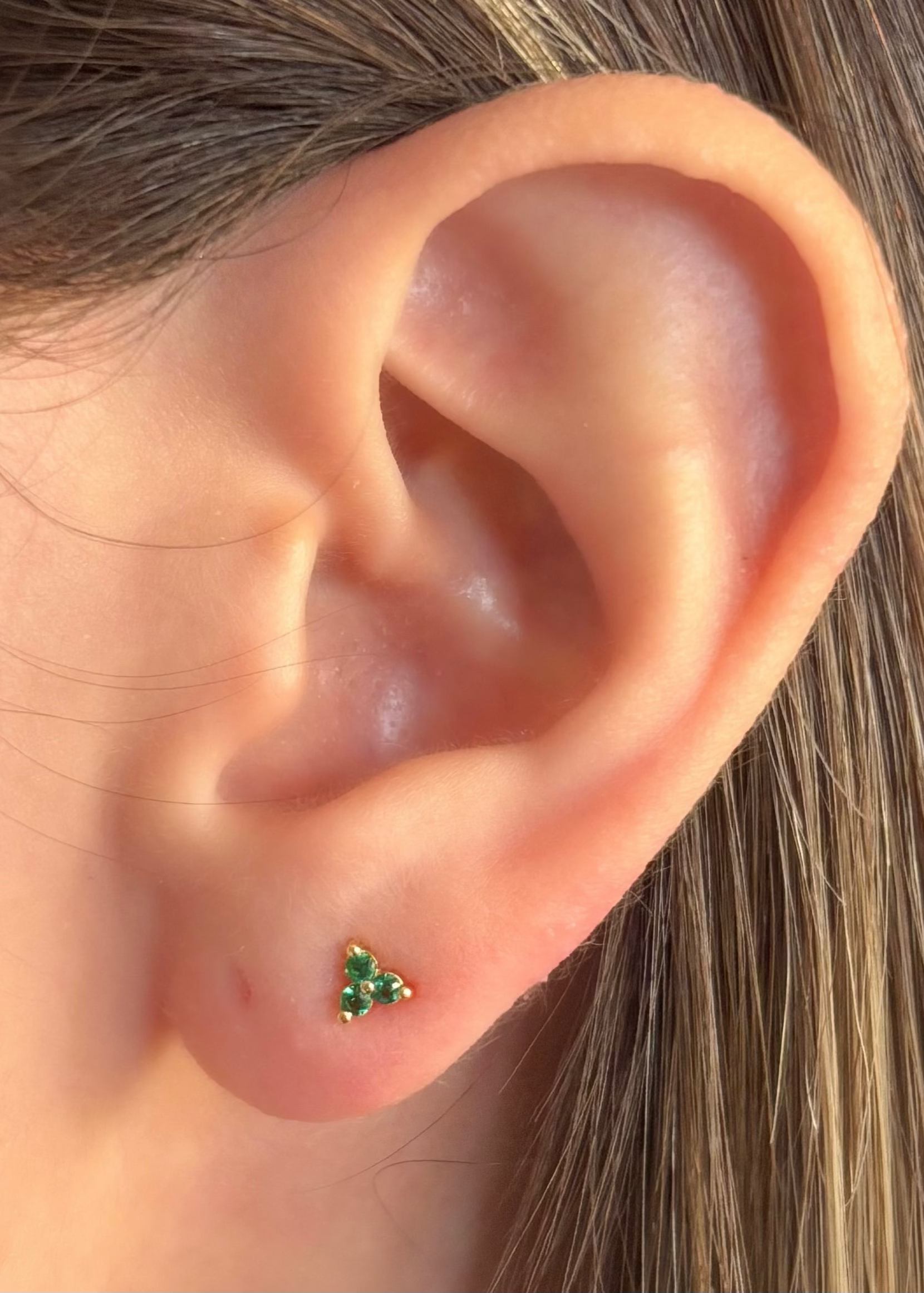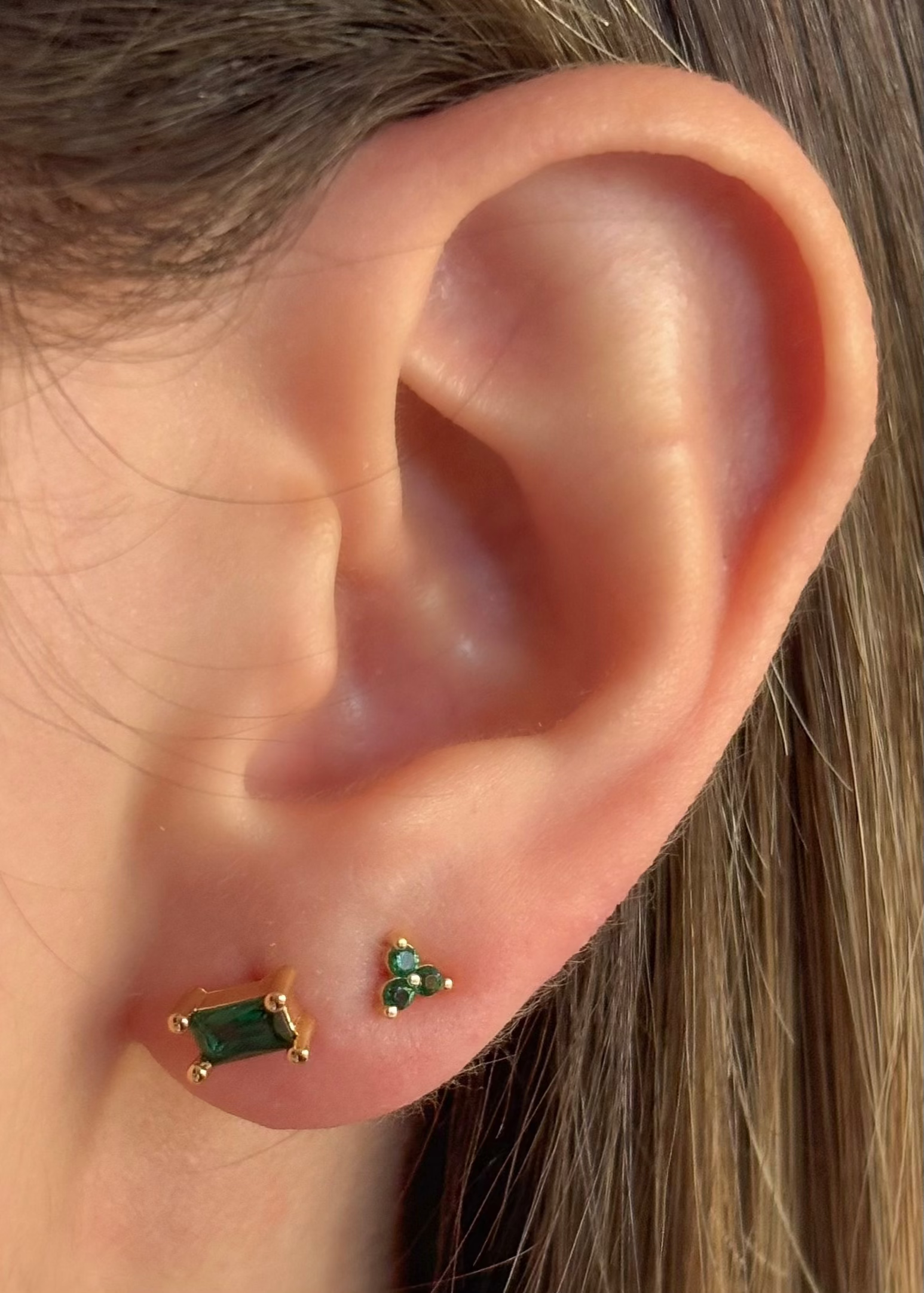 Topito individual de plata chapado en oro de 18k con circones color esmeralda.